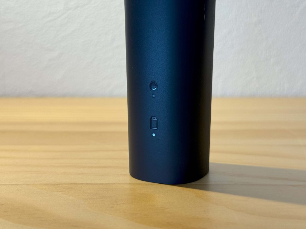 電源ボタンを長押しすると、トラベルロックモードになり、持ち運び中に電源ボタンが押されても勝手に動作しないようになっています。