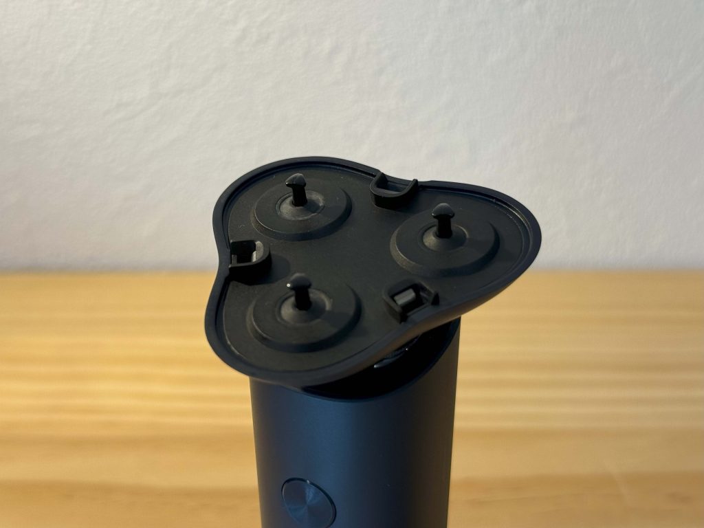 ヘッド部は、3つの刃が独立して設計されており、3つそれぞれのヘッドが肌に沿って動くようになっています。実際に触ってみるとカタカタ動くことがわかりました。