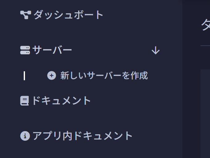 左のメニューからサーバーをクリックし、新しいサーバーを作成をクリックします。