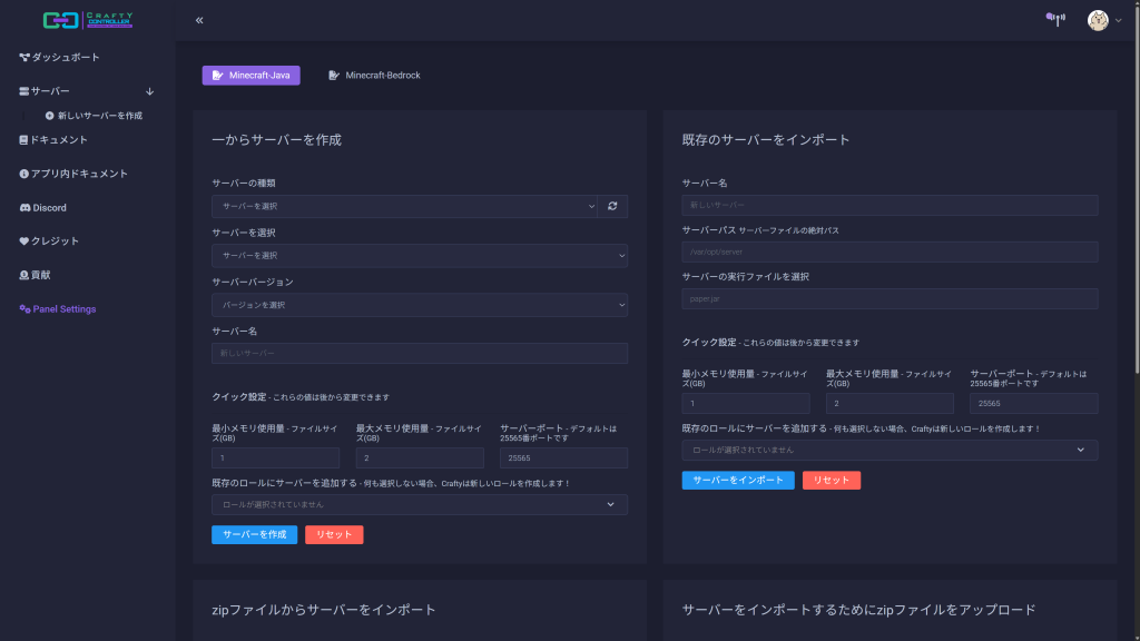 強みはインストールが簡単、複数環境(Java/Bedrock)を切り替え可能、ユーザー・ロール・権限設定があるため、複数管理者や共有用途に対応、といったところでしょうか。